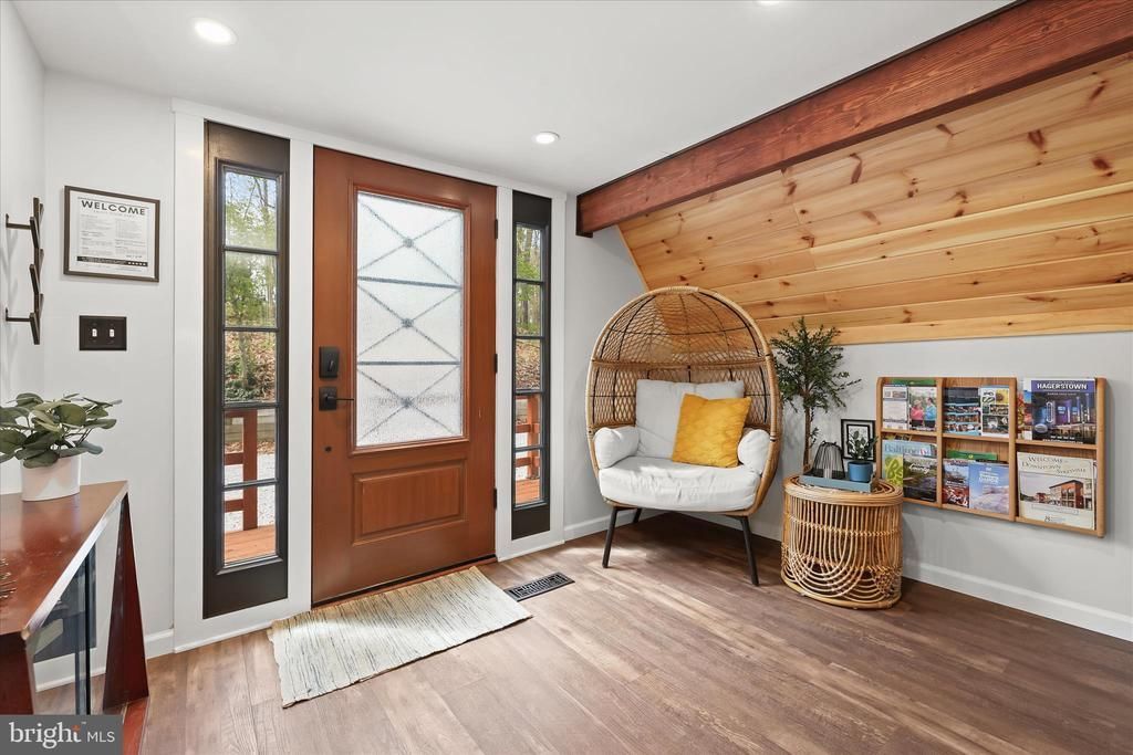 Beautifully renovated, design-forward A-frame retreat tucked on 1.13 private wooded acres in sought-after Marriottsville. Renovated to preserve its original mid-century character (circa 1973) while incorporating modern-day conveniences, this turnkey 2-bedroom, 1-bath home offers a rare blend of timeless style and updated comfort. Highlights include soaring cathedral ceilings, warm wood finishes, a spiral staircase, and an open-concept living space filled with natural light. The updated kitchen features a large island and stylish finishes—perfect for entertaining or relaxing weekend escapes. Step outside to enjoy multiple outdoor living spaces including a spacious deck, hot tub, and fire pit area, all ideal for year-round enjoyment. The home is perfectly positioned on a gentle hilltop, offering scenic wooded views and a true sense of retreat. The detached garage with electric provides even more flexibility and can easily be used as a gym, game room, or additional hangout space. A rare bonus feature is the additional mini A-frame structure, offering endless potential. With a proven history as a highly successful short-term rental generating approximately $50,000 annually, this property has earned over 100 five-star reviews and ranks among the top 1% of Airbnb properties. Offered fully furnished and turnkey—ready for continued rental use, a private weekend getaway, or full-time residence. Conveniently located just minutes from the McKeldin area of Patapsco Valley State Park with miles of hiking and biking trails, and approximately 6 miles to I-70 for easy access to Baltimore, DC, and surrounding areas. A rare opportunity to own a truly unique, design-forward cabin retreat.