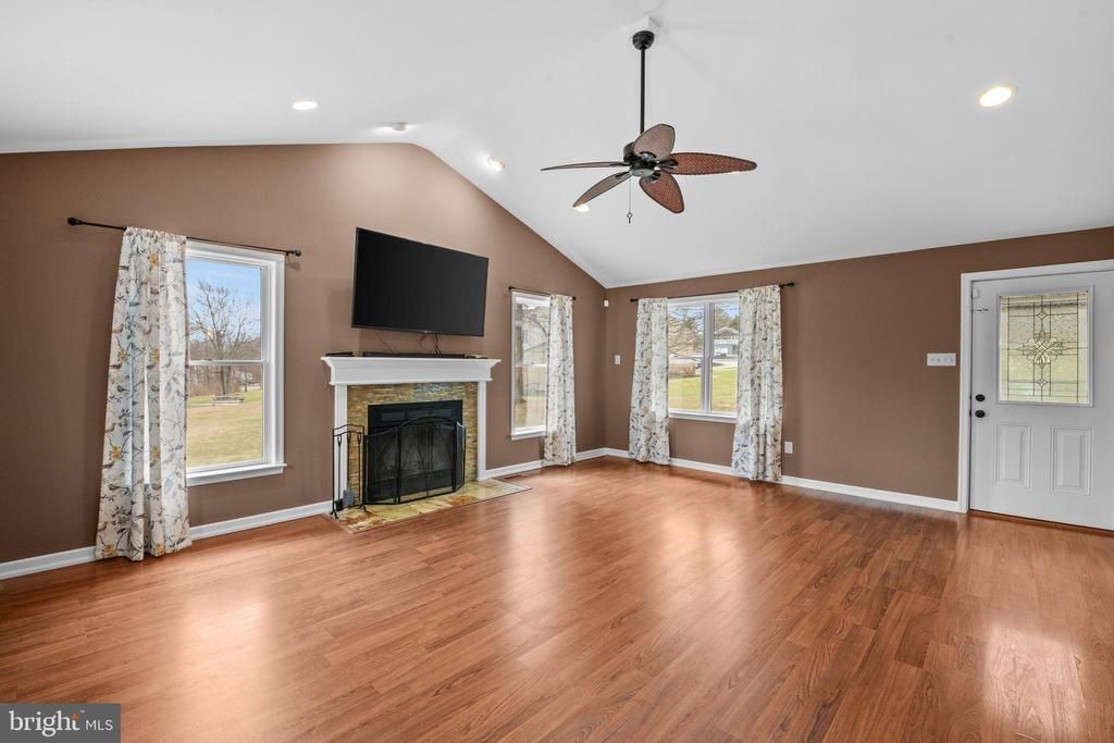 Welcome to this spacious and versatile ranch home set on a half-acre lot, offering the ease of one-floor living with room to grow. This custom ranch home has quality materials throughout and features five bedrooms and three full baths. Step inside to a stunning great room with vaulted ceilings and a cozy wood-burning fireplace, perfect for gathering or relaxing. The well-appointed kitchen is designed with both style and function in mind, offering granite countertops, a large center island, breakfast bar, tile backsplash, farmhouse sink, pantry, and open shelving. A dining area adds additional space for your holiday meals. The main-level primary suite is filled with natural light from numerous windows and includes private access to the two-tier composite deck that overlooks the pond and is ideal for enjoying quiet mornings or evening unwinding. The primary bath features a large soaking tub and Corian countertop vanity. Three additional bedrooms and a full bath complete the main level, along with a spacious laundry room equipped with ample cabinetry. The deck is easily accessible from the great room, primary bedroom, and laundry room, creating a seamless indoor-outdoor flow. The walkout daylight lower level expands your living space even further, featuring a large rec room, a sitting area with a built-in reading nook. An additional room offers the perfect space for a home office or playroom, while the fifth bedroom and full bath provide ideal accommodations for guests or extended living arrangements. With its own entrance and separate parking area, the lower level offers excellent potential for multi-generational living or private guest quarters. Built with quality materials throughout and thoughtfully designed for comfort and flexibility, this home offers space, functionality, and endless possibilities.